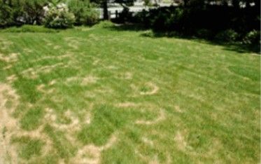 During cool, wet weather, circular or doughnut-shaped patches of dead grass will develop. Symptoms may be apparent throughout the growing season, but they commonly intensify in late July or August during periods of summer stress and can go beyond 2-3 feet. The patches may be localized to one part of the yard or widely scattered throughout the lawn.